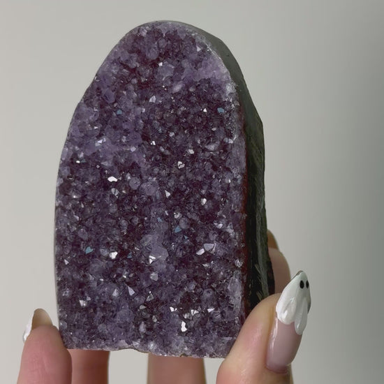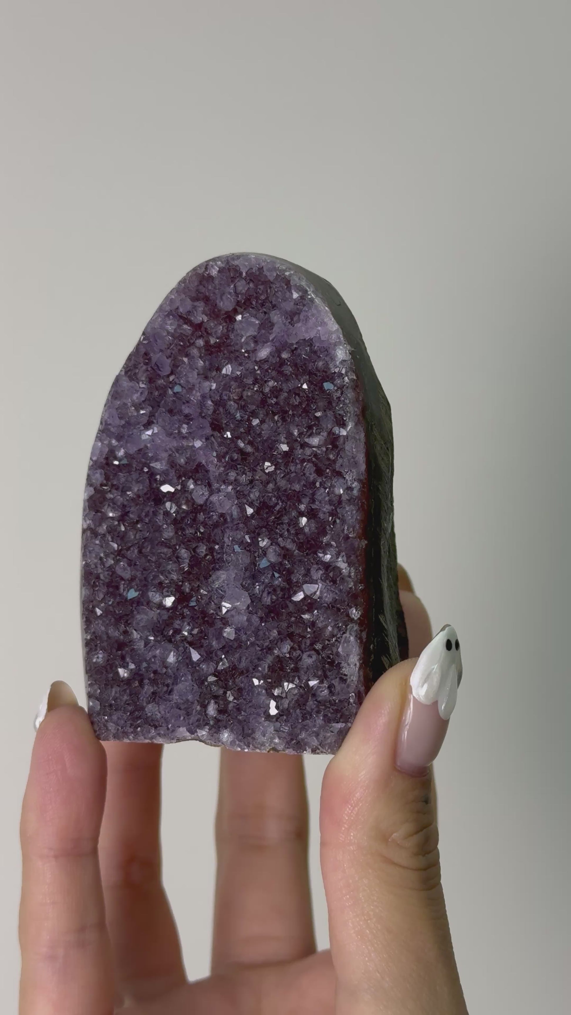 This stunning Amethyst cutbase shimmers with a unique blend of deep violet and subtle red undertones, creating a mesmerizing energy flow. Its polished base allows it to stand beautifully on any altar, shelf, or bedside table — a perfect piece for adding tranquility and spiritual balance to your space.