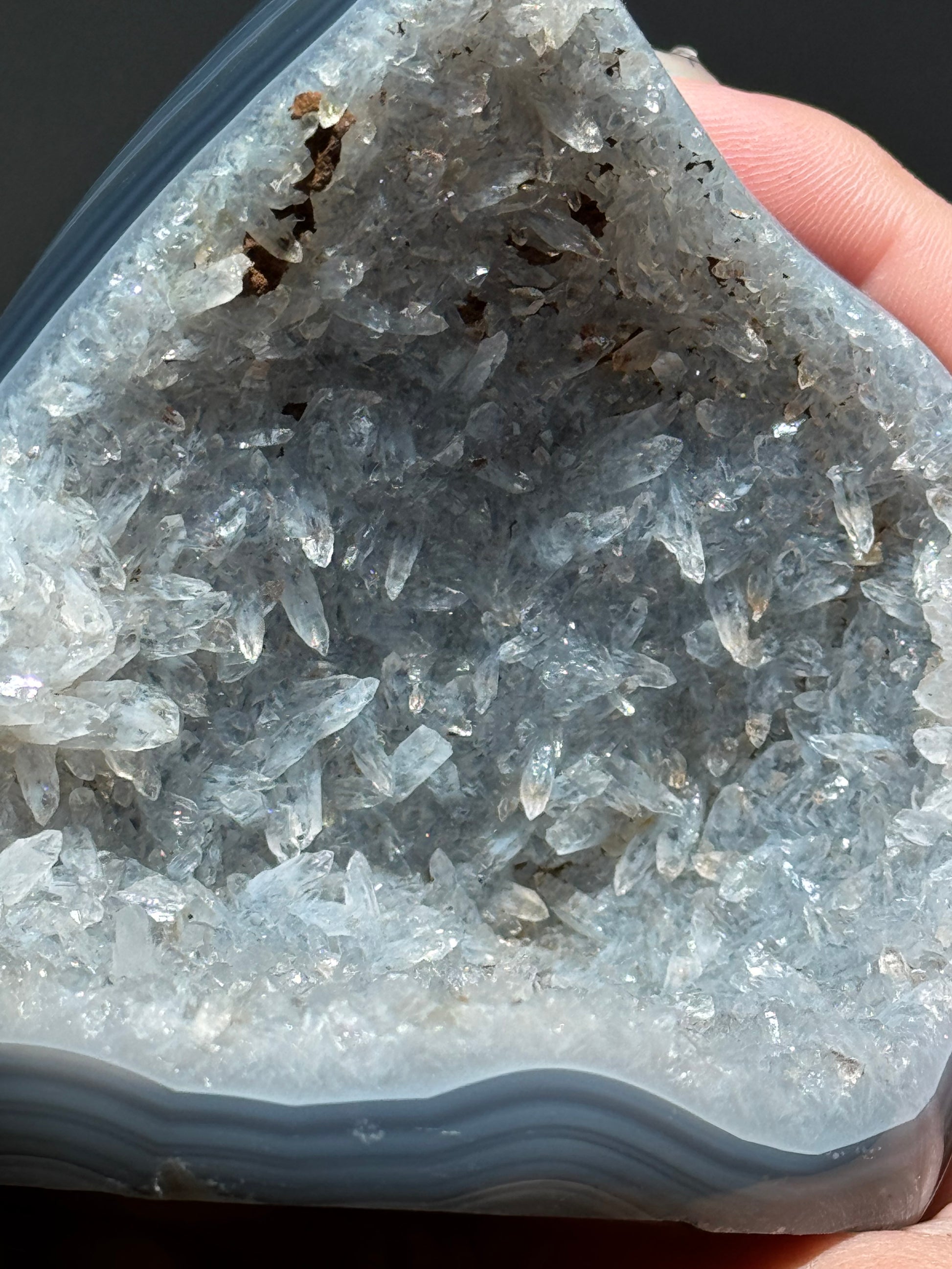 This gorgeous druzy agate flame is full of sparkling crystal formations that shimmer with calming energy. Its deep druzy pocket draws you inward, creating a sense of serenity and focus. The flame shape represents transformation and the spark of new beginnings, making this piece a powerful ally for personal growth and spiritual alignment.