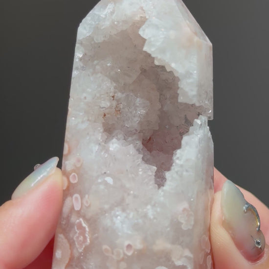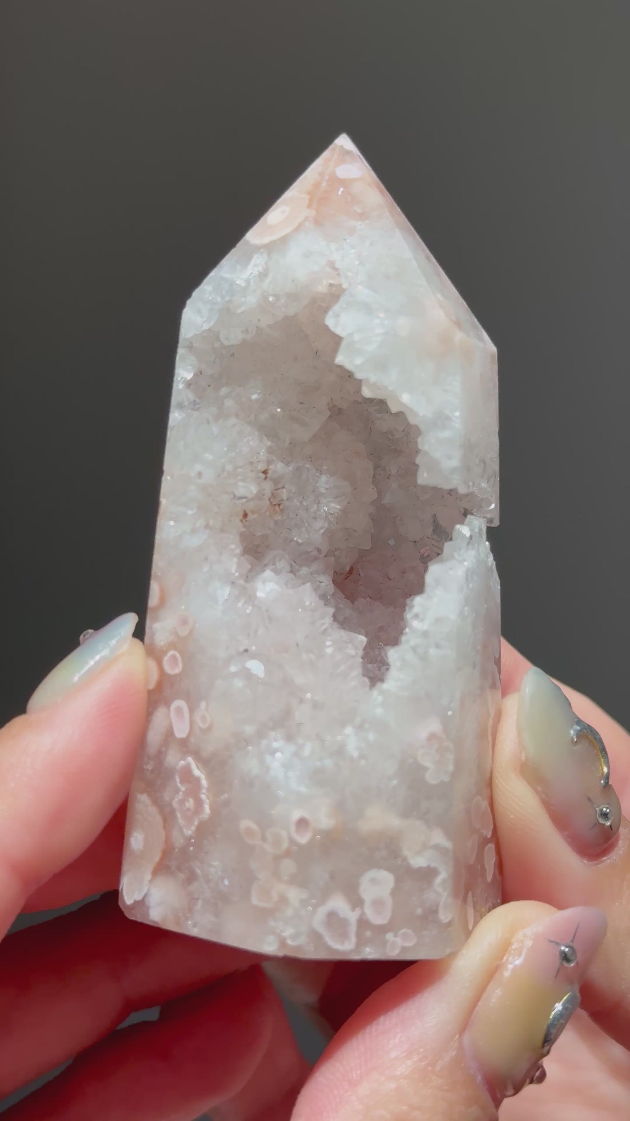 This enchanting Flower Agate tower shows off incredible dimension, with delicate flower-like patterns that seem to blossom inside the stone. Despite its smaller size, the detailing makes it stand out as a truly magical piece for any collection.