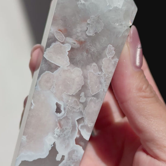 Flower Agate is the stone of growth, balance, and blossoming potential. Its intricate flower plumes remind us that growth is a process of unfolding, while the green and chlorite inclusions add grounding and heart-centered support.