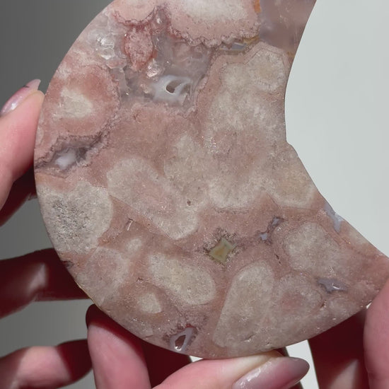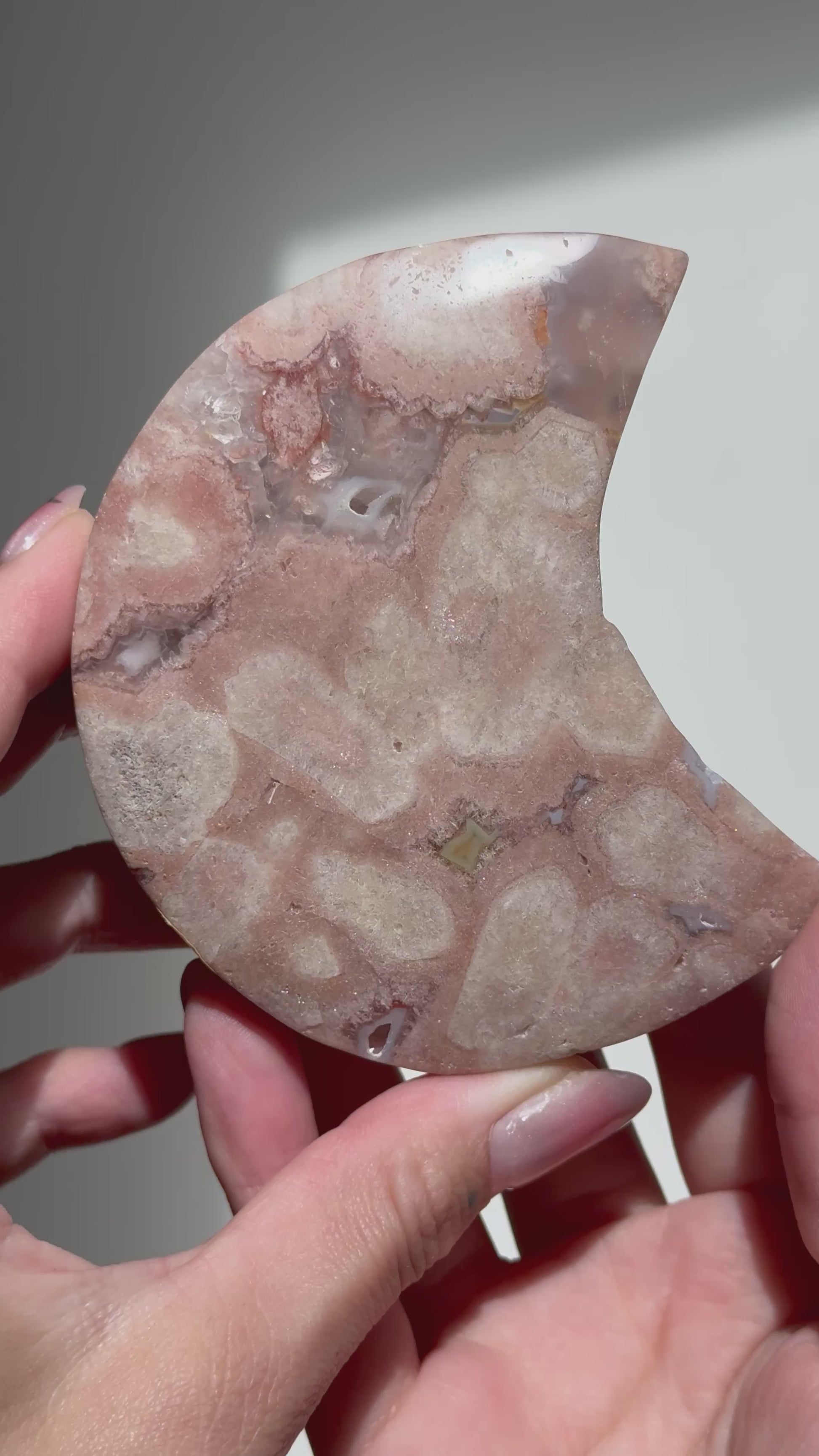 💖 You will receive the exact Flower Agate moon carving pictured. 🌸